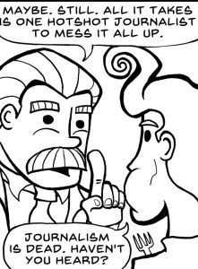 I know, wasn’t that already posted on the SHORT STRIPS page weeks ago? It was, but I’m swapping that one out for this one. The news broadcasters one is a good idea, but I didn’t execute it as well as I’d have liked. Should have an episode of FDAGENT up tonight or tomorrow, it’s about half done. So without any further French word