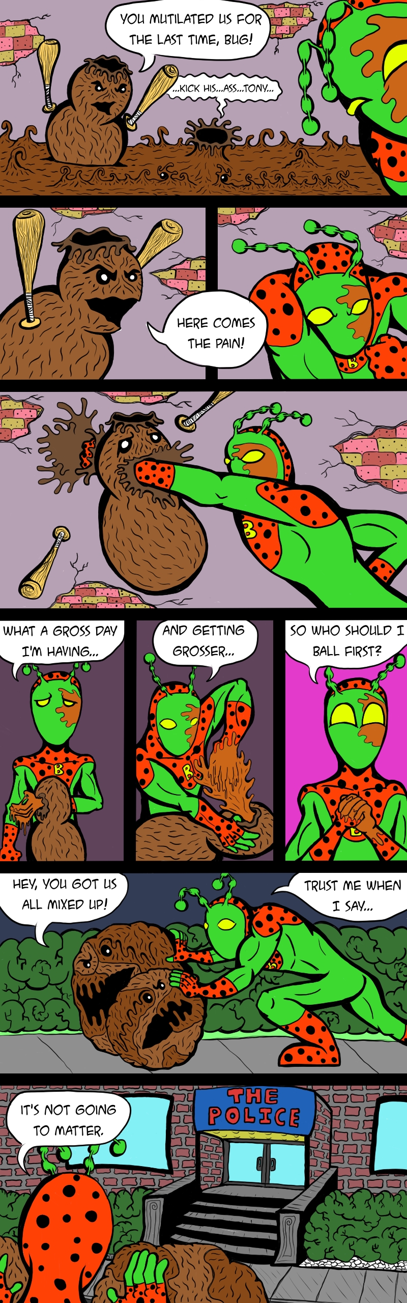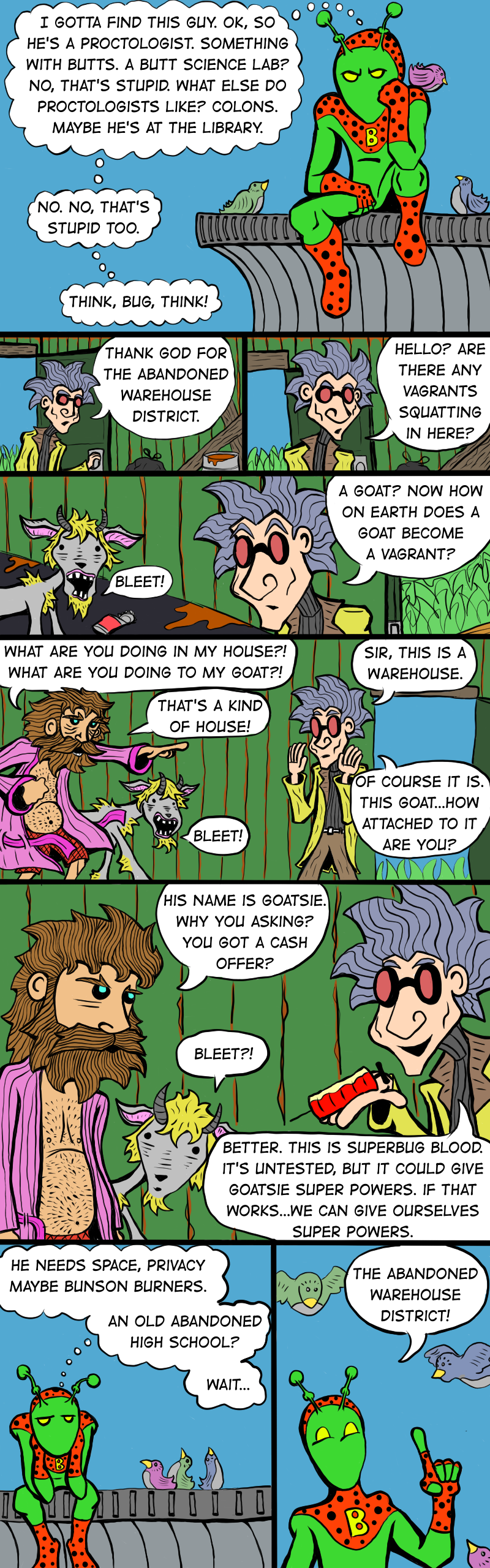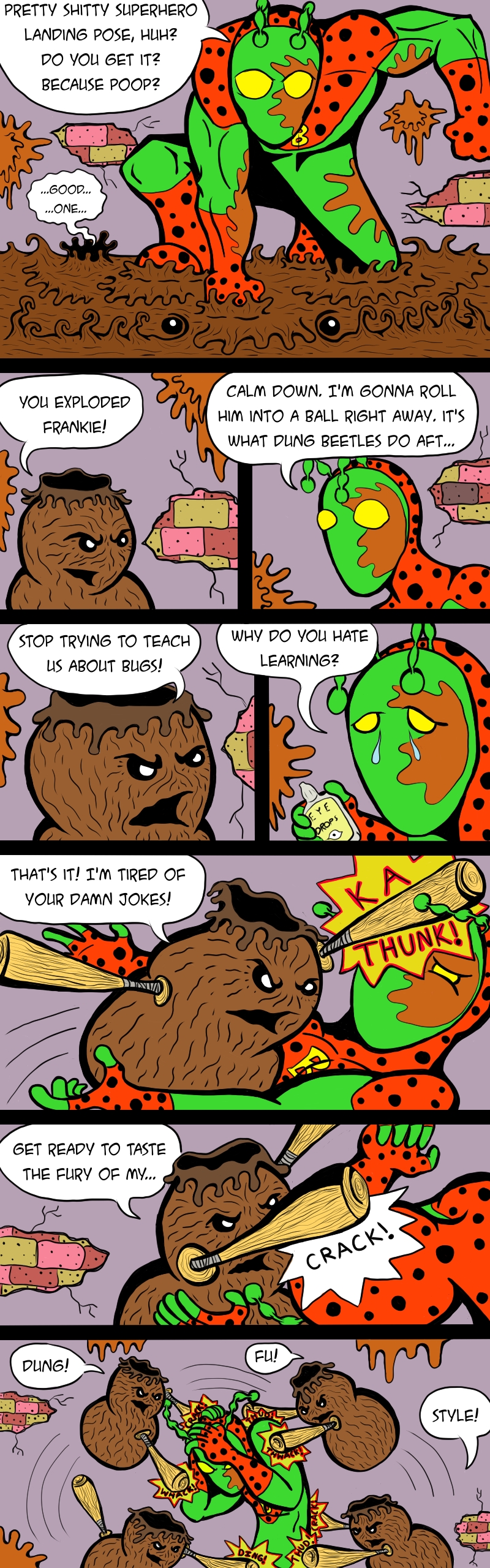 Hello and let me introduce you to the very first character in the Super Dumb Comic Universe, SUPERBUG! He has the powers of over a hundred bugs! Practically any bug you can think of outside of a spider. No spider powers. I’m not looking to have my legs broken by a couple of goons wearing mouse ears.
